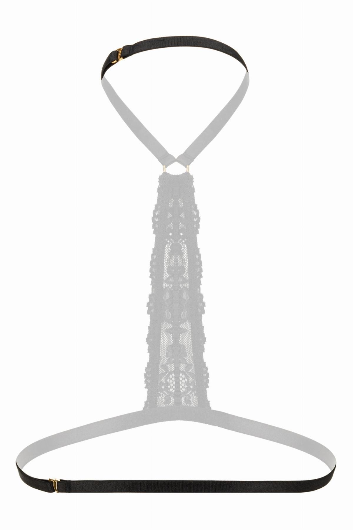Lavet af bløde, elastiske stropper med guldfarvede detaljer og fine blondedetaljer, er denne bralette fra Christine mere end blot et modetilbehør – det er en selvsikker erklæring om stil og personlighed.